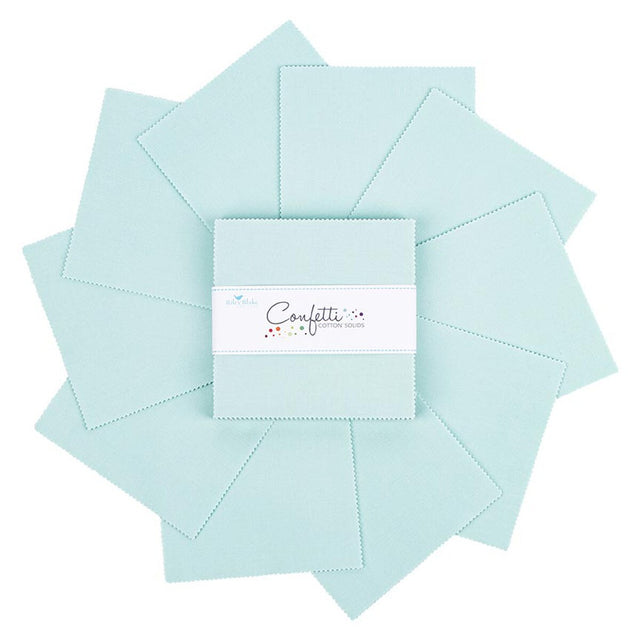 This 5" Stacker precut bundle includes 42 pieces of the Songbird color from the Riley Blake Designs Confetti Cotton™ collection.