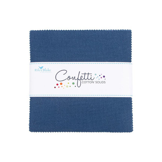 This 5" Stacker precut bundle includes 42 pieces of the Oxford Blue color from the Riley Blake Designs Confetti Cotton™ collection.