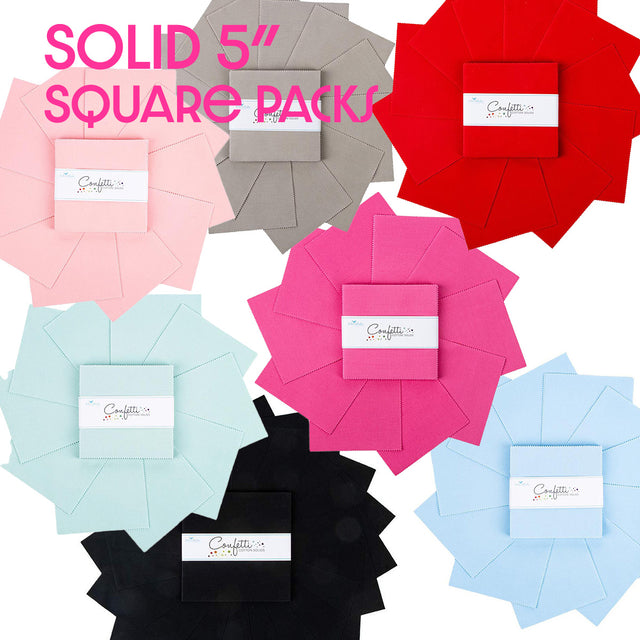 Solid 5" Square Charm Packs from Riley Blake - Schoolhouse Red is backordered and will ship as soon as it is back in stock.