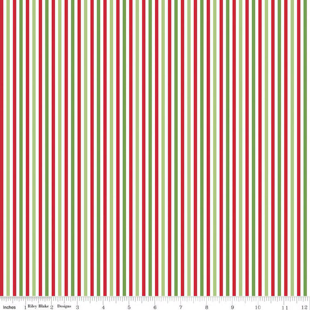 Now here's the piece of fabric you will be needing in every Christmas quilt from here on out! This stripe fabric has 1 shade of red then alternating stripes of 2 different shades of green makes it match so many different types of Christmas fabrics. You're really going to love this one!