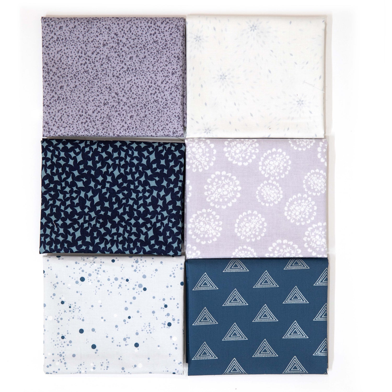 Curated fabric bundles makes quilting so much easier. We all know the struggle of buying fabric (especially online) and then having it not match your the fabrics you already have. This bundle eliminates that problem by having 6 prints in a lovely range of grays and blues that will be perfect for your next quilt.